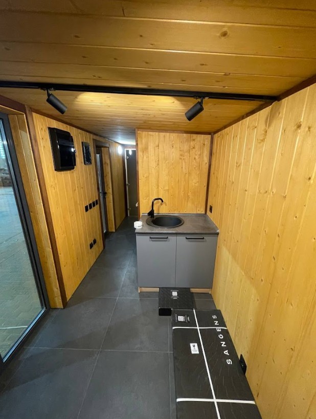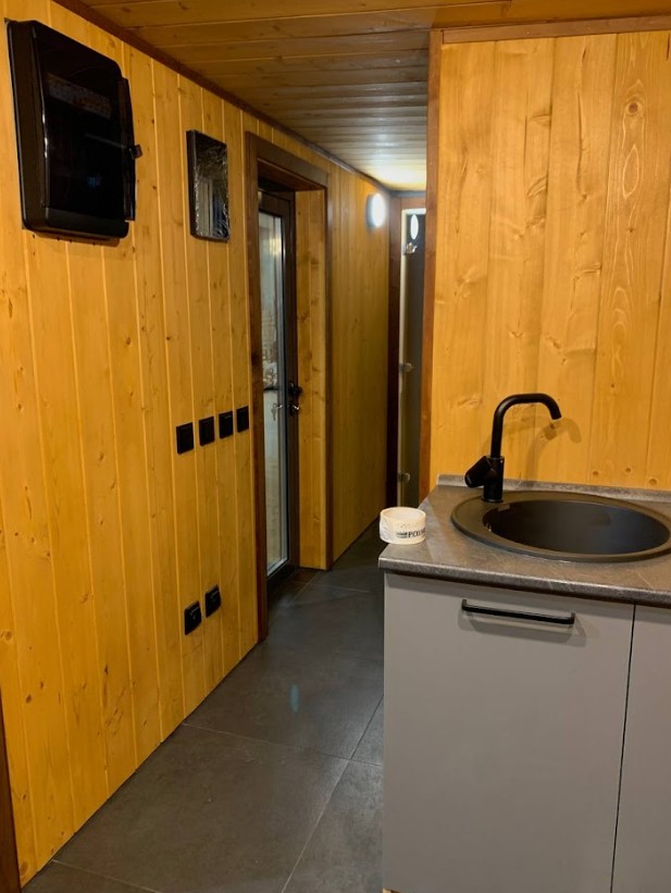 Банный комплекс оборудуем плиткой, также подведем водоснабжение.
