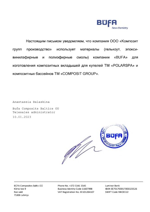 Использование современных, надежных материалов премиум- класса, производства BUFA Composite Systems GmbH & Co. KG, позволяет обеспечить заводскую гарантию до 10 лет.