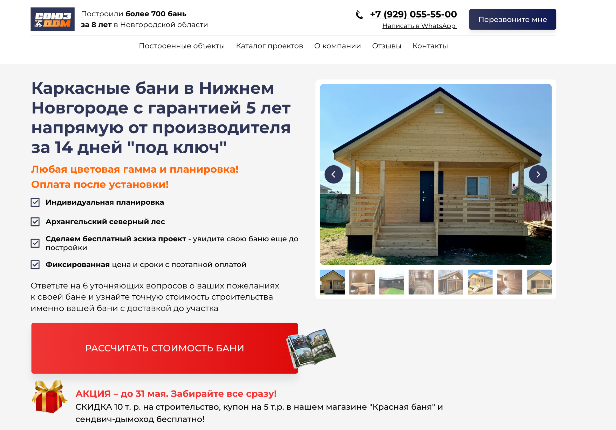 Запускали и сопровождали проекты в строительных и производственных нишах — дома, бани, лестницы, жби, b2b и других.